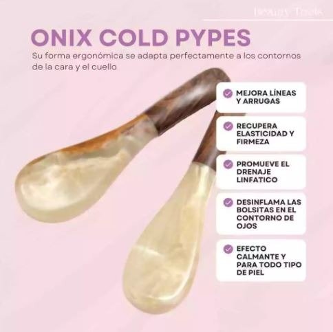 Las ONIX PYPES captan el máximo frío posible, estimula las células nerviosas de la piel y la tensa de inmediato. Tienen acción refrigerante, efecto drenante, descongestivo, reafirmante, además mejora la circulación sanguínea y atenua las rojeces.